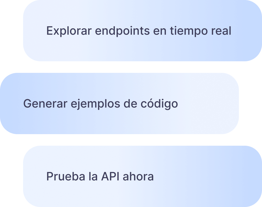 Genera ejemplos de código de forma interactiva y administra tantos API Keys como necesites accediendo a tu cuenta en  Configuración > Funcionalidades