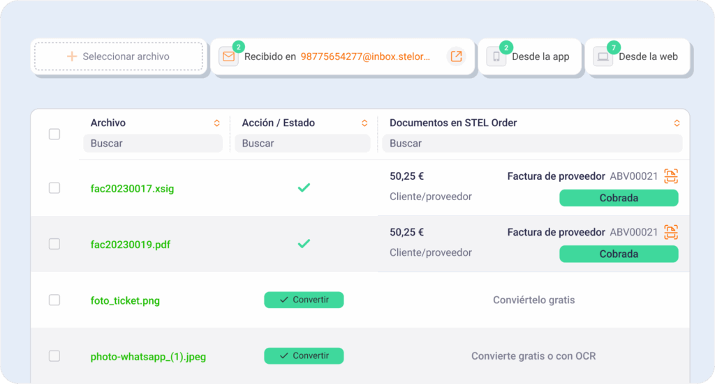 Convierte gratis todos los tickets y facturas que necesites en documentos de tu STEL Order de forma manual.