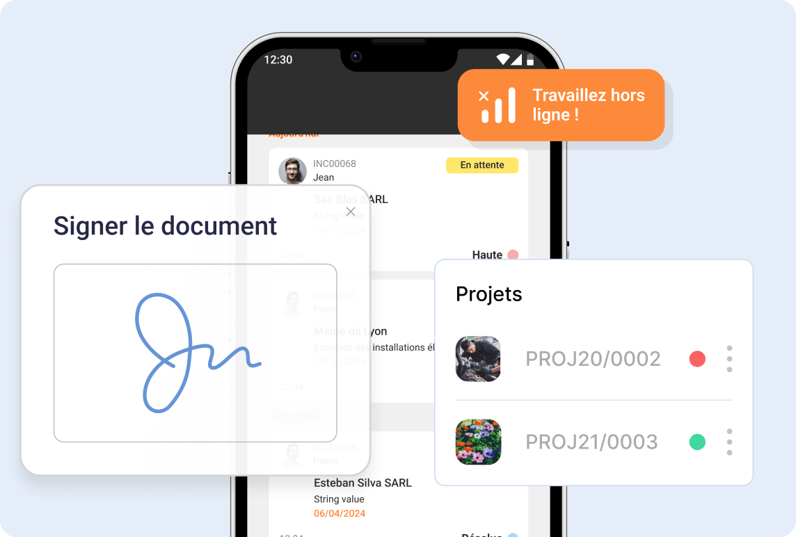 Il vous permet de programmer des maintenances préventives, de gérer les bons de travail, les garanties ou les réparations, et vous pouvez ajouter la signature de vos clients sur n’importe lequel de vos documents commerciaux.