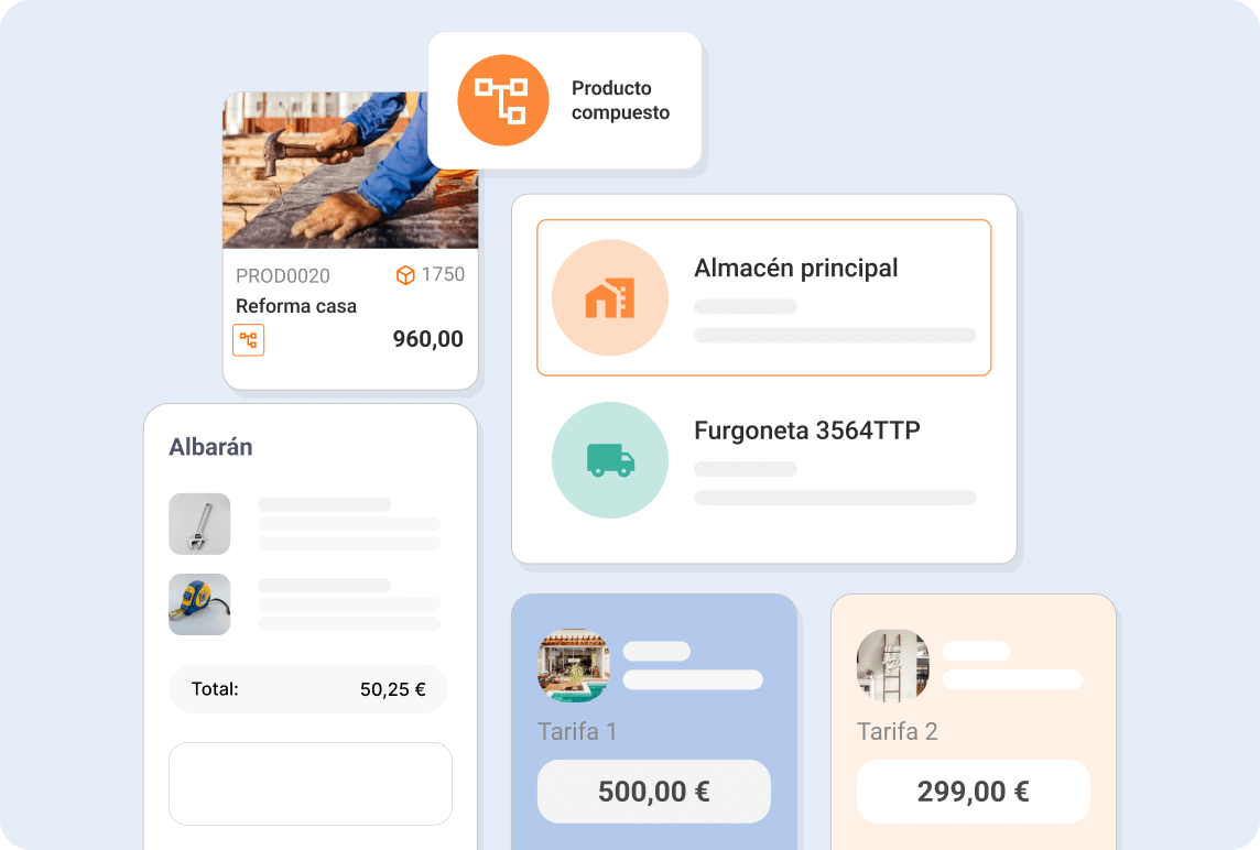 Añade productos compuestos y sus componentes en tus documentos con un clic.