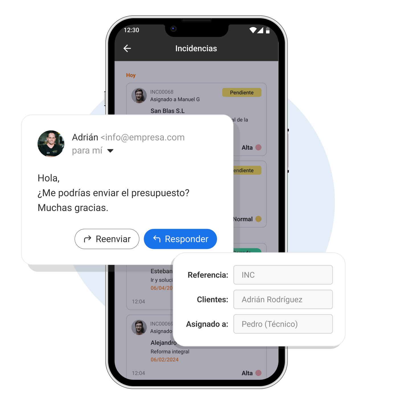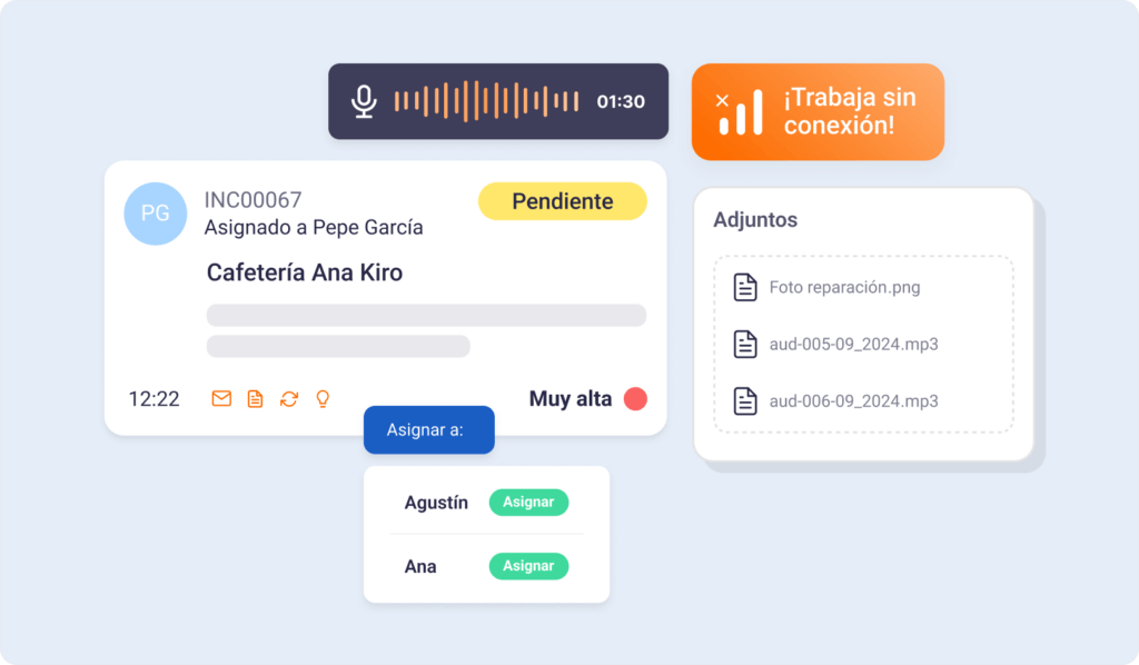 Asigna incidencias o mantenimientos preventivos a cualquier técnico de forma rápida y sencilla.